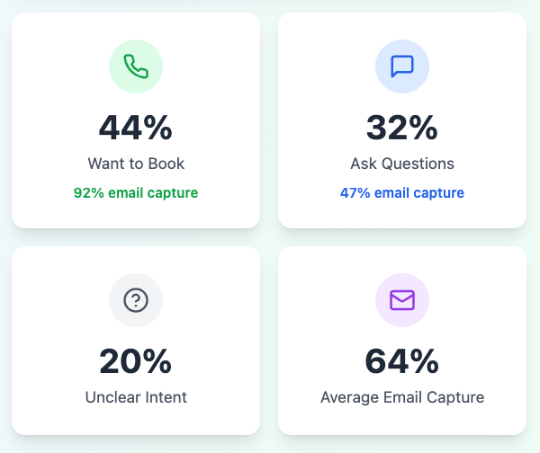 Over 40% of calls had booking intent.