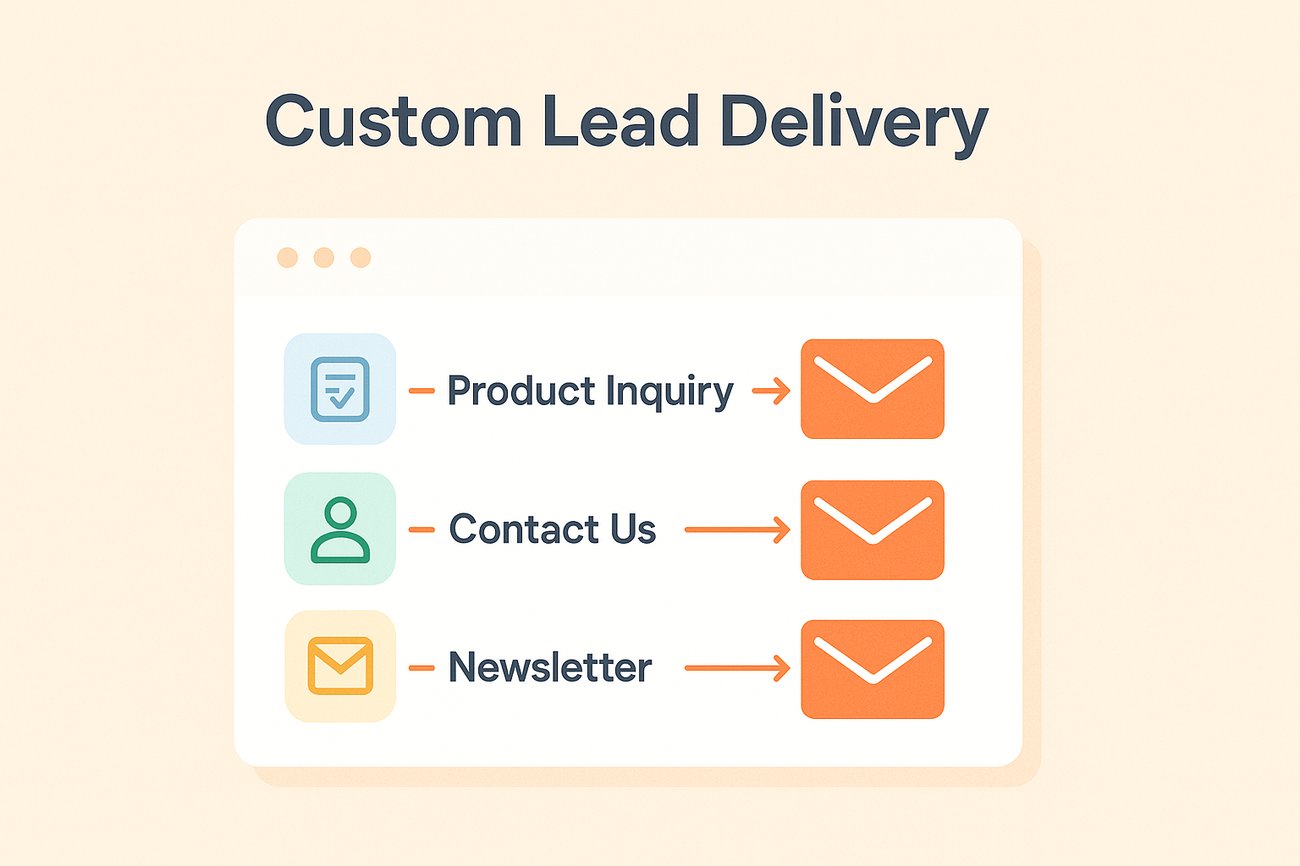 Specify separate email addresses for different lead types (Product Inquiry Forms, Contact Us forms, Newsletter Subscriptions).